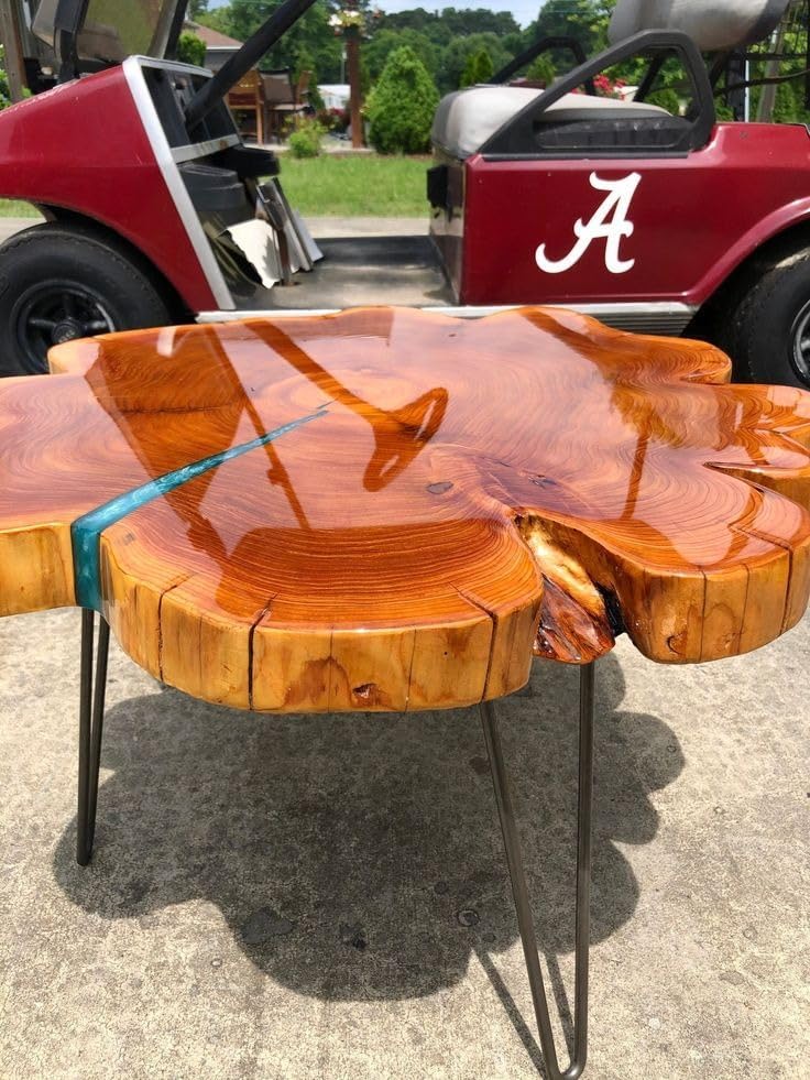 Rustic Round Wooden Live Edge Table with Blue Resin Coffee Table End/Side Table Centre Table Patio Table Console Table Home Office Table Living Room Table - 18 x 18 Inches / Without Stands
